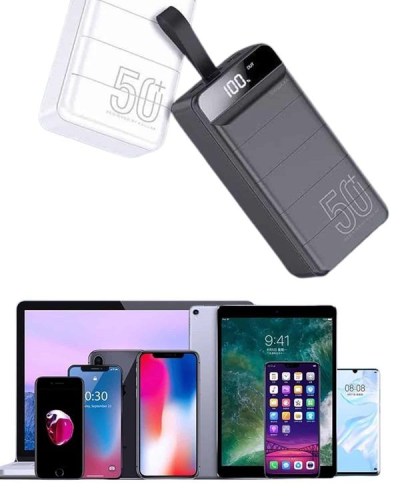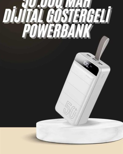 Güçlü performansı ve yüksek kapasiteli yapısıyla öne çıkan bu 50000mAh powerbank, mobil yaşamınıza kesintisiz enerji sunar. Geniş cihaz uyumluluğu sayesinde iOS lightning, Android micro USB ve Type-C girişleri ile pek çok farklı cihazı kolayca şarj edebilirsiniz. Aynı anda üç cihazı destekleyen 3 USB çıkışı (5V/2.1A) sayesinde arkadaşlarınızla paylaşabilir veya tüm cihazlarınızı tek bir noktadan şarj edebilirsiniz.Zaman kazandıran hızlı şarj özelliği, yoğun tempoda bile sizi yarı yolda bırakmaz. Üzerindeki dijital gösterge, şarj seviyesini anlık olarak takip etmenizi sağlar. Ayrıca LED flaş ışığı sayesinde acil durumlarda pratik bir aydınlatma çözümü sunar. Taşıma kolaylığı sağlayan silikon askısı ise dış mekan kullanımlarında işlevsellik katar. PD3.0 çift yönlü hızlı şarj desteği, hem powerbank’inizi hem de bağlı cihazları daha kısa sürede enerjiyle buluşturur.Akıllı şarj teknolojisi, cihazlarınızın pil ömrünü koruyarak güvenli kullanım sağlarken, yenilikçi çip sistemiyle aşırı ısınma gibi risklerin önüne geçer. Siyah ve beyaz renk alternatifleriyle sunulan bu model, yüksek kapasite ve güvenliği bir araya getirerek günlük hayatın vazgeçilmezlerinden biri haline gelir.