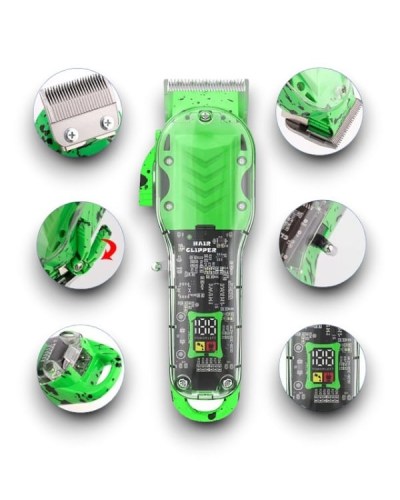 • Profesyonel Saç Kesme Makinesi Ergonomik tasarım, Profesyonel bıçaklar, Değiştirilebilir taraklar, (3,6,10,13,16,19,22,25mm) Sessiz tasarım, Mikro işlemci kontrollü kesim hızı, Değiştirilebilir kesim ayarları, Kablosuz tasarım 8 adet değiştirilebilir renkli tarak, Yüksek performanslı 2000 mA Li