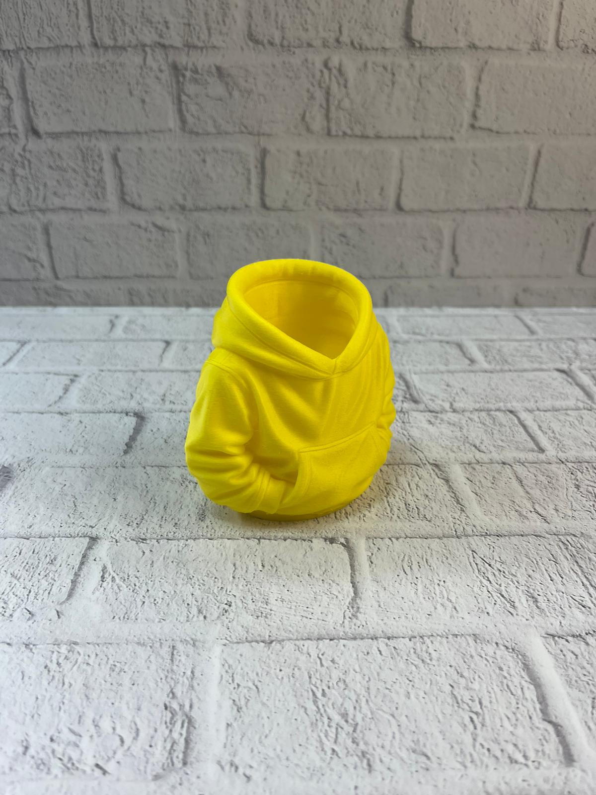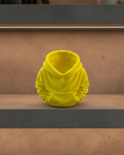 Sarı hoodie kalemlik, masa üstü düzenini sağlarken dekoratif bir görünüm sunan şık ve eğlenceli bir aksesuardır. 10×10 cm ölçüsü sayesinde çalışma masası, raf veya kitaplık üzerinde rahatlıkla kullanılabilir. Hoodie formundaki tasarımı, ürünü sıradan kalemliklerden ayırarak özgün bir tarz ortaya koyar.
