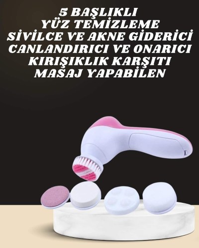 Taşınabilir Yüz Temizleme Cihazı Masaj, Peeling, Temizlik 5 Başlıklı