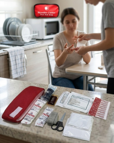 Çok amaçlı ilk yardım çantası, günlük yaşamda karşılaşılabilecek küçük kazalar için hızlı çözüm sunar.
