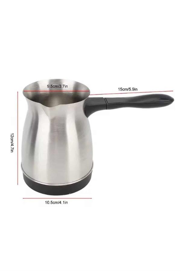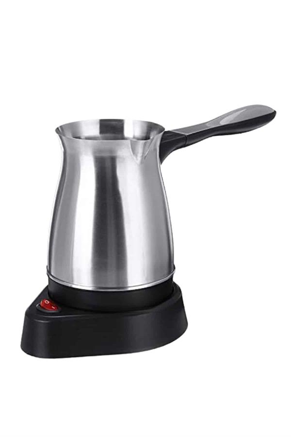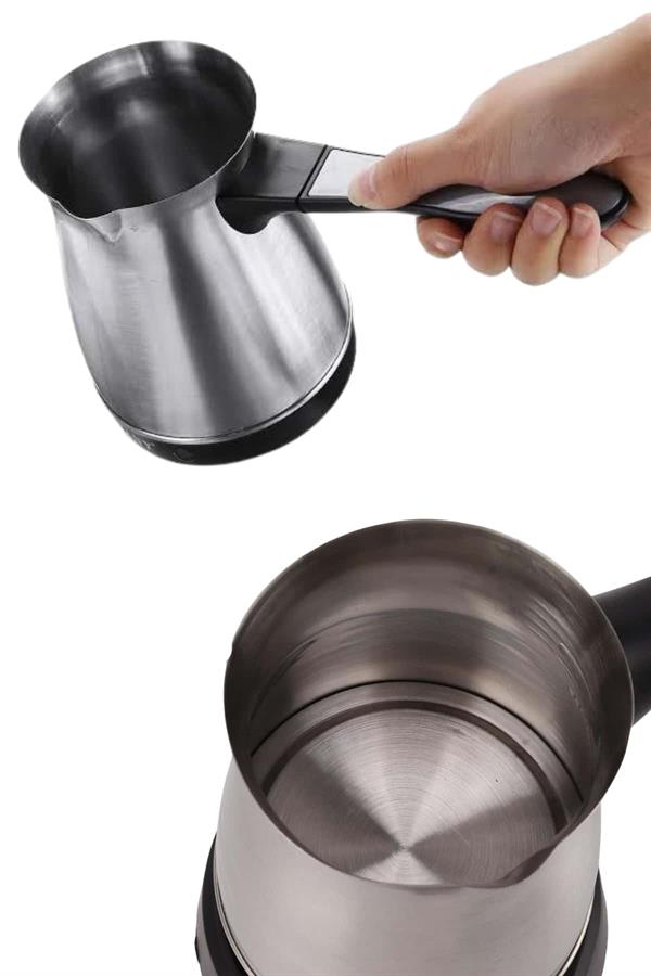 Bu elektrikli cezve, 800 watt gücüyle yüksek performans sağlar ve mükemmel Türk kahvesi deneyimi sunar. 360 ml kapasitesi ile 6 fincana kadar kahve hazırlayabilirsiniz, böylece kalabalık misafirlerinize veya büyük aile yemeklerinde kolayca kahve ikram edebilirsiniz. Gizli rezistans teknolojisi, hızlı ısınma ve güvenli kullanım sağlar, ayrıca temizlik açısından da büyük kolaylık sunar.360 derece dönebilen kablosuz tabanı, rahat bir kullanım sağlar ve her açıdan kolayca hareket etmenize olanak tanır. Paslanmaz çelik gövdesi, hem dayanıklı hem de estetik açıdan şık bir görünüm sunar. Kolayca temizlenebilen tasarımı, hijyenik bir kullanım imkanı tanır ve her seferinde taze kahve hazırlamanızı sağlar.Cezvenin üzerinde bulunan kırmızı güç düğmesi ile açma ve kapama işlemleri son derece basittir. Isınmayan ergonomik kulpu ise güvenli ve rahat bir tutuş sağlar. Paslanmaz çelik yapısı, uzun ömürlü kullanım ve şık bir tasarım sunarak mutfağınıza zarif bir dokunuş katar.Bu elektrikli cezve, Türk kahvesi sevenler için mükemmel bir seçimdir. Hem işlevsel hem de estetik özellikleriyle kahve hazırlama deneyiminizi daha pratik ve keyifli hale getirir. 6 fincana kadar kapasitesiyle geniş aileler ve misafirler için ideal bir yardımcıdır.