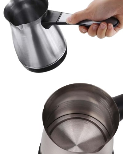 Bu elektrikli cezve, 800 watt gücüyle yüksek performans sağlar ve mükemmel Türk kahvesi deneyimi sunar. 360 ml kapasitesi ile 6 fincana kadar kahve hazırlayabilirsiniz, böylece kalabalık misafirlerinize veya büyük aile yemeklerinde kolayca kahve ikram edebilirsiniz. Gizli rezistans teknolojisi, hızlı ısınma ve güvenli kullanım sağlar, ayrıca temizlik açısından da büyük kolaylık sunar.