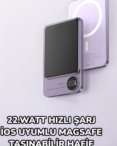 iOS Uyumlu Hızlı Şarj Powerbank ile Her Zaman Hazır Olun!10.000 mAh kapasiteye sahip bu taşınabilir powerbank, 22.5W hızlı şarj ve Magsafe özelliği ile cihazlarınızı hızlı ve güvenli şekilde şarj eder. Dijital şarj göstergesi sayesinde kalan batarya seviyesini kolayca takip edebilirsiniz. Kompakt ve hafif tasarımı ile her yere kolayca taşıyabilirsiniz. iOS cihazlarınız için ideal bir çözüm!