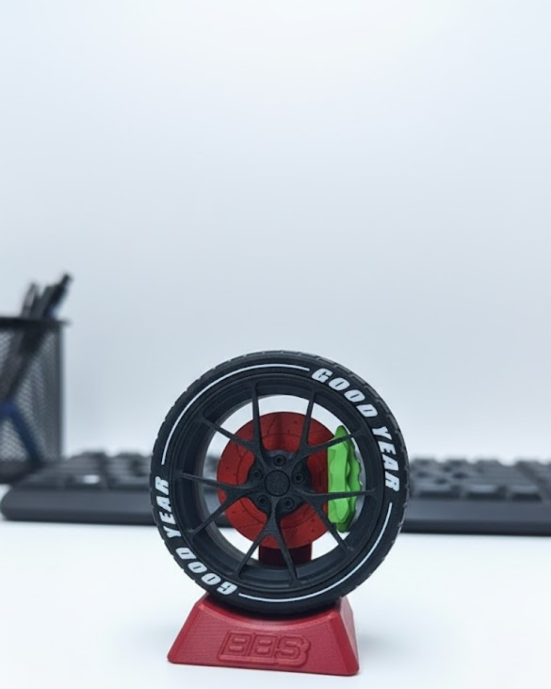 Jant tasarımlı masa üstü ofis dekoru, çalışma alanına sportif ve dinamik bir hava katmak isteyenler için özel olarak tasarlanmıştır. Gerçek otomobil jantlarından ilham alan detaylı görünümü sayesinde ofis masası, raf veya kitaplık üzerinde dikkat çekici bir dekoratif obje olarak kullanılabilir. Kompakt yapısı sayesinde masada fazla yer kaplamaz ve çalışma düzenini bozmaz. Spor tasarımıyla klasik ofis aksesuarlarından ayrışır ve kişisel tarzı yansıtma imkânı sunar. Ofis ve home office ortamlarında dekoratif kullanım için idealdir.