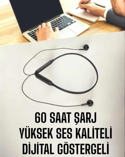 Kablolu Boyun Askılı Dijital Göstergeli Bluetooth Kulaklığı 60 Saat