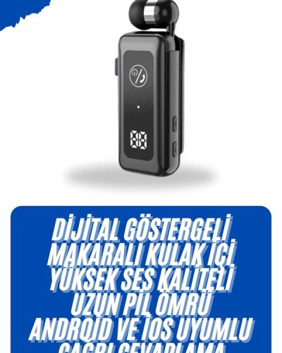 Bluetooth 5.2 Teknolojili Makaralı Titreşimli Kulaklık | Dijital Ekran, Hafıza Kartı Desteği ve İki Cihaza BağlanmaBu Bluetooth 5.2 teknolojisiyle donatılmış kulaklık, kesintisiz müzik dinleme ve yüksek kaliteli ses deneyimi sunar. Hafıza kartı desteği sayesinde, müziklerinizi bir SD kart aracılığıyla kulaklıkta dinleyebilirsiniz. Ayrıca, aynı anda iki cihaza bağlanabilme özelliği, cihazlar arasında kolayca geçiş yapmanıza olanak tanır, böylece iş ve eğlenceyi bir arada götürürken zaman kazanabilirsiniz.Kulaklığın içe sarılabilen kablo tasarımı, karışıklığı önler ve taşıma esnasında düzen sağlar. Makaralı sistem sayesinde kablonun her zaman düzgün ve kullanıma hazır olduğundan emin olabilirsiniz. Bağlantı durumu, batarya seviyesi ve diğer bilgileri dijital ekran üzerinden kolayca takip edebilirsiniz. Ayrıca, rahat kullanım için yaka klipsi desteği, kulaklığınızı sabitleyerek taşımayı daha pratik hale getirir.Gelişmiş titreşimli bildirim sistemi, gelen çağrılar ve mesajlar konusunda sizi anında bilgilendirir, böylece hiçbir önemli iletiyi kaçırmazsınız. Kulaklık, dinamik sürücülerle doğal ve net ses deneyimi sunar, stereo ve HD ses kalitesiyle müzik dinlerken veya telefon görüşmeleri yaparken her zaman yüksek performans sağlar. Yüksek gürültü engelleme özelliği, dışarıdaki sesleri izole ederek daha temiz bir ses ile iletişim kurmanıza yardımcı olur.Kulaklık, müzikle yapılan veya gelen çağrılar arasında otomatik geçiş yapar, böylece müzik dinlerken bir arama aldığınızda görüşmeye kolayca geçiş yapabilirsiniz. Kulaklık üzerindeki fonksiyon tuşları sayesinde, şarkıları oynatabilir, durdurabilir, atlayabilir ve ses seviyesini ayarlayabilirsiniz. Ayrıca, kamera fonksiyonlarını da bu tuşlar aracılığıyla kontrol edebilirsiniz.Bluetooth 5.2 teknolojisi ile hızlı ve güvenilir bağlantı sağlar ve 10 metreye kadar kablosuz erişim sunar. 140mAh şarj edilebilir batarya, 20 saate kadar konuşma süresi ve müzik dinleme imkanı sunar. Hızlı şarj özelliği sayesinde sadece 20 dakikada şarj edilerek tekrar kullanılabilir. USB Type-C şarj girişi, cihazınızı hızlı ve verimli bir şekilde şarj eder.