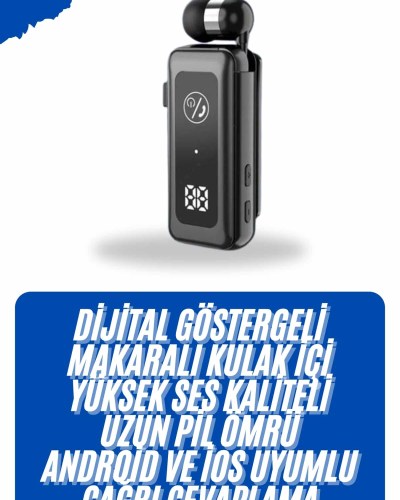 Kulaklığın içe sarılabilen kablo tasarımı, karışıklığı önler ve taşıma esnasında düzen sağlar. Makaralı sistem sayesinde kablonun her zaman düzgün ve kullanıma hazır olduğundan emin olabilirsiniz. Bağlantı durumu, batarya seviyesi ve diğer bilgileri dijital ekran üzerinden kolayca takip edebilirsiniz. Ayrıca, rahat kullanım için yaka klipsi desteği, kulaklığınızı sabitleyerek taşımayı daha pratik hale getirir.