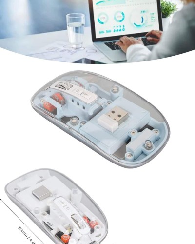 Sessiz Tıklama Çift Modlu Bluetooth Ve Alıcı Şeffaf Mouse Fare