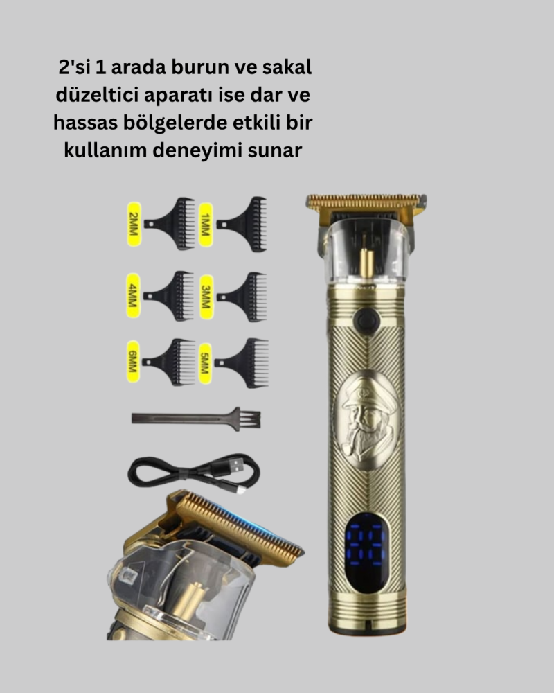 Kompakt boyutları ve hafif tasarımı ile bu düzeltici set, çantanıza kolayca sığar. Seyahatlerde ya da günlük kullanımda pratiklik sağlar. Elinize tam oturan ergonomik gövde yapısı, uzun kullanımlarda bile rahat tutuş sağlar. USB kablosu ile her ortamda şarj edilebilir. Çoklu başlıkları sayesinde tüm tıraş ihtiyaçlarını karşılar.