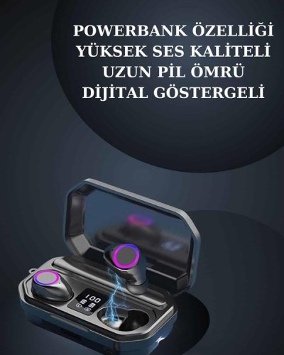 Kadınlar İçin 3 Kordonlu Akıllı Saat ve Dijital Göstergeli Powerbankli Bluetooth Kulaklık Dokunmatik Kontrol