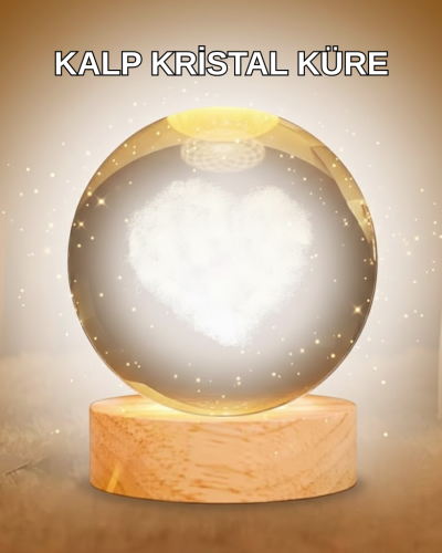 Ürün, üst kısmı kristal camdan alt kısmı kaliteli ahşap malzemeden üretilmiş dayanıklı bir yapıya sahiptir. Kalp figürünün lazer işleme teknolojisi ile cam içine işlenmesi, desenin yıllar boyunca bozulmadan kalmasını sağlar. Kristalin parlak yüzeyi ışığı mükemmel şekilde yansıtarak ürüne premium bir görünüm kazandırır. Ahşap standın sağlam yapısı küreyi dengede tutar ve uzun süre güvenle kullanmanızı sağlar. Estetik, modern ve sağlam bir dekorasyon objesi arayanlar için ideal bir seçimdir.