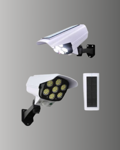 Bu 2’si 1 arada güneş enerjili dış mekân lambası, 77 LED ışık kaynağı ve  güvenlik kamerası tasarımıyla hem aydınlatma hem de caydırıcı güvenlik çözümü sunar. Gün boyunca entegre polisilikon güneş paneli (5.5V / 300mA) sayesinde enerjisini güneşten alır, akşamları ise dahili 2400mAh kapasitesindeki çift 18650 lityum pil ile kesintisiz aydınlatma sağlar. 8 ila 10 saate kadar aralıksız çalışabilen güçlü bataryasıyla evinizin çevresinde güvenliği artırır.