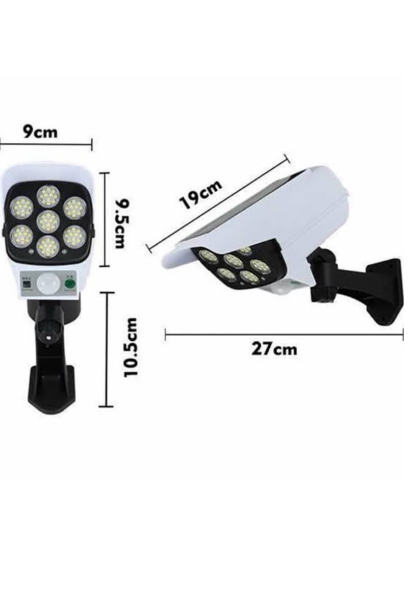 Sahte güvenlik kamerası görünümü sayesinde caydırıcı bir etki yaratırken, aynı zamanda güçlü LED aydınlatmasıyla bahçenizi veya dış mekanınızı aydınlatır. Hem güvenlik hem de dekoratif amaçlı kullanım için idealdir.