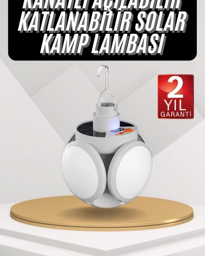 Bu taşınabilir solar lamba, hem acil durumlarda hem de kamp, yürüyüş gibi açık hava etkinliklerinde her zaman yanınızda bulundurabileceğiniz, dayanıklı ve verimli bir aydınlatma aracıdır. Kolay şarj edilebilir ve pratik kullanımı ile ihtiyaç duyduğunuz her an size aydınlık sağlar.