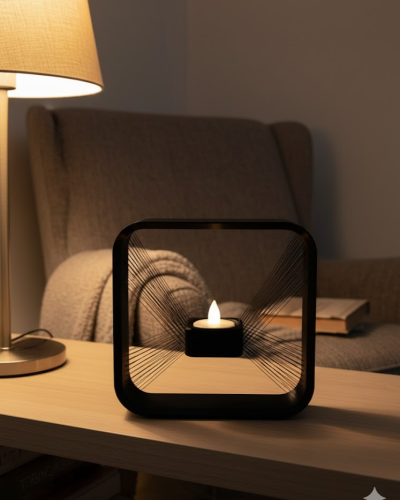 Kare formda tasarlanan askılı mumluk, duvar dekorasyonuna farklı bir boyut kazandırır. Salon, oturma odası, antre veya yatak odası gibi alanlarda rahatlıkla kullanılabilir. Mum ışığıyla birlikte ortamda yumuşak ve sıcak bir ambiyans oluşturur. Duvara asılı yapısı sayesinde tek başına güçlü bir dekor unsuru olarak öne çıkar. Modern, bohem veya sade dekorasyon stilleriyle uyum sağlar.