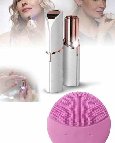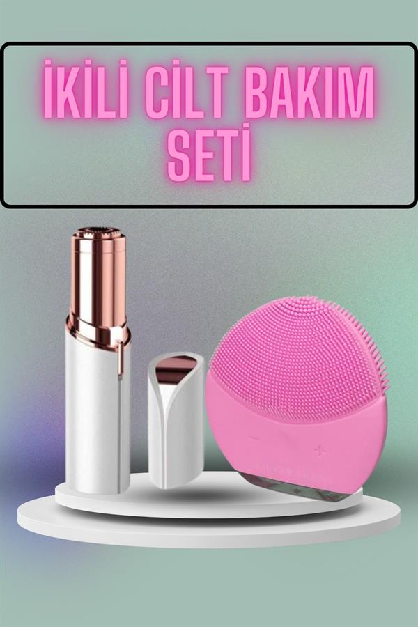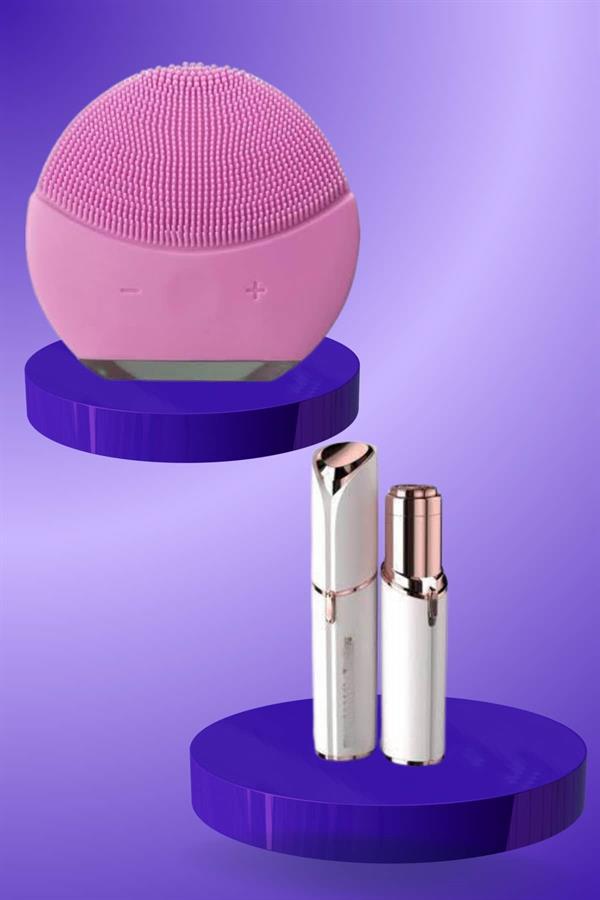 KAŞ BIYIK VE YÜZ EPİLASYON ALETİ VE TİTREŞİMLİ YÜZ TEMİZLEME MASAJ ALETİ İKİLİ SET