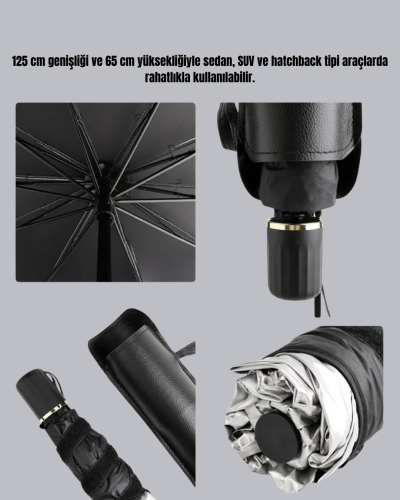 Yeni nesil katlanabilir oto güneşlik, 125 cm genişlik ve 65 cm yükseklik ölçüleriyle sedan, SUV ve hatchback tipi araçların ön camlarına tam uyum sağlar. Özel tasarımı sayesinde hem işlevsel hem de estetik bir kullanım sunar. Yüksek kaliteli UPE alaşım malzeme ile üretilmiş bu güneşlik, uzun ömürlü ve dayanıklıdır.