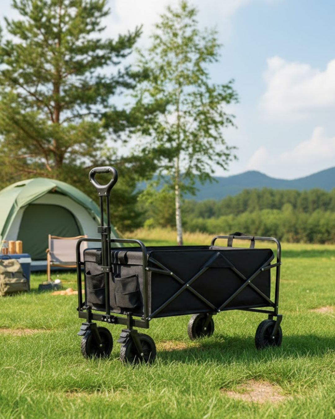 Katlanabilir Kamp Arabası, dayanıklılığı, geniş kapasitesi ve kullanım kolaylığı ile açık hava ve günlük taşıma ihtiyaçlarında güvenilir bir yardımcıdır.