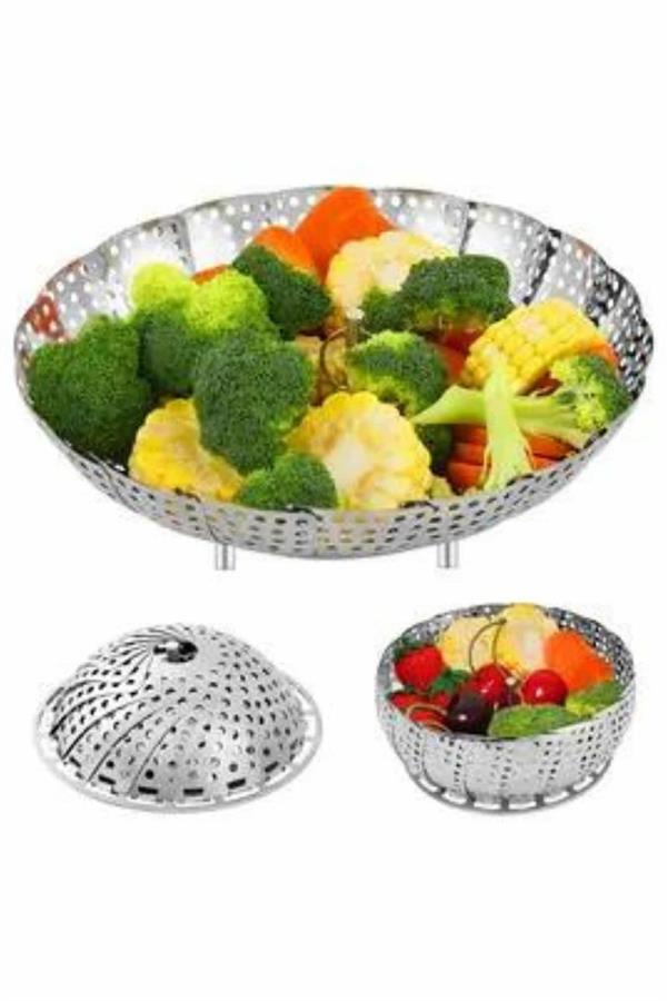 Katlanır Buharda Sebze Pişirici Haşlayıcı Haşlama Sepeti Aparatı