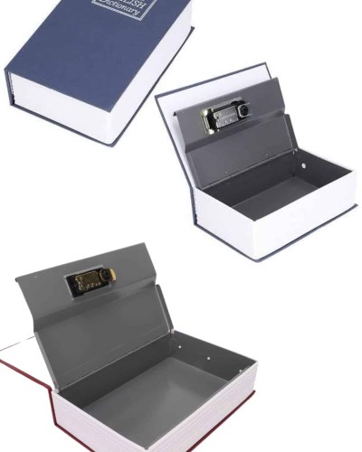 Gizliliği ve güvenliği şık bir tasarımla birleştiren Sözlük Görünümlü Lacivert Kitap Kasa, günlük yaşamınızda değerli eşyalarınızı saklamanın en zekice yollarından biri. Gerçek bir İngilizce sözlük kitabı gibi tasarlanmış dış yüzeyi sayesinde, kitaplıkta veya masada sıradan bir kitap gibi durur. Bu özelliğiyle, özellikle hırsızlık gibi istenmeyen durumlara karşı kusursuz bir kamuflaj görevi görür. İç kısmında yer alan dayanıklı metal kasa, takılar, nakit para, önemli evraklar ya da dijital hafıza cihazları gibi kişisel ve değerli eşyalarınızı güvenle muhafaza etmenizi sağlar.