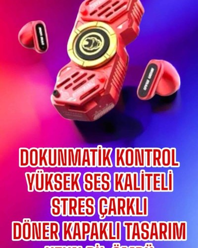 Kırmızı Kablosuz Bluetooth Kulaklık Stres Çarklı Oyuncu Kulaklığı