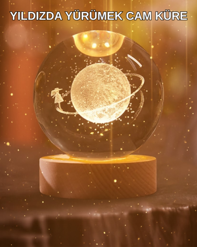 Dekoratif sarı ışıklı cam küre, şık tasarımı ve göz alıcı kız figürü ile mekanlarda benzersiz bir ambiyans oluşturur. Hem gece lambası hem de dekoratif obje olarak kullanılabilir. Ahşap standı, doğal malzeme dokusu ile küreye sıcak bir görünüm kazandırır. Büyük boy yapısı sayesinde raflarda, sehpalarda veya masa üstlerinde dikkat çekici bir dekoratif parça oluşturur. Yumuşak sarı ışığı ortama huzur verir ve sıcak bir atmosfer oluşturur.