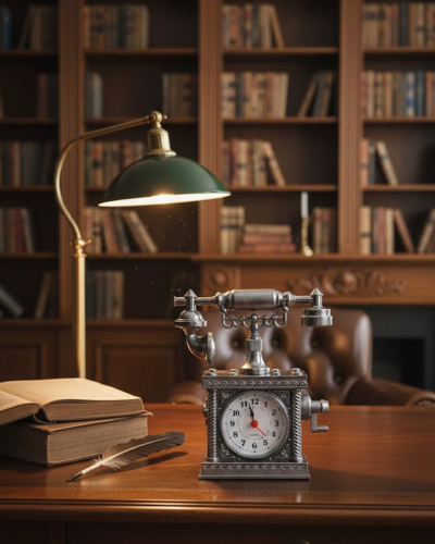 Klasik telefon görünümlü masa saati, geçmişin izlerini taşıyan tasarımıyla yaşam alanlarınıza nostaljik bir hava kazandırır. Eski tip telefon formu, dekoratif detaylarla birleştirilerek hem şık hem de kullanışlı bir çalar saat ortaya çıkarılmıştır. Günlük kullanımda pratiklik sunarken, dekoratif yönüyle de ön plana çıkar.