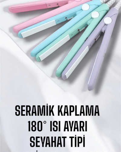Mini ve Güçlü: Seyahatlerinizde de Şıklığınızdan Ödün VermeyinKompakt boyutları (16 cm) ve hafif tasarımı ile dikkat çeken bu seramik kaplama saç düzleştirici, çantanızda taşımaya uygun ve kullanımı oldukça kolaydır. Elektriklenme ve yıpranmaya karşı özel kaplaması, saçlarınızın daha sağlıklı görünmesini sağlar. 180°C’ye kadar hızlıca ısınabilen cihaz, kısa sürede etkili sonuçlar elde etmenizi sağlar. Günlük hayatta ya da seyahatte, her an kusursuz düz saçlara kavuşmanız için tasarlanmıştır.