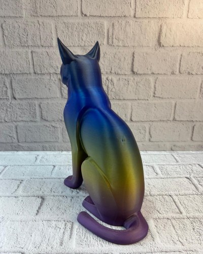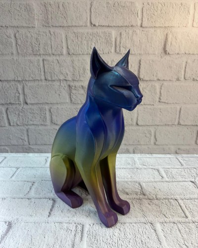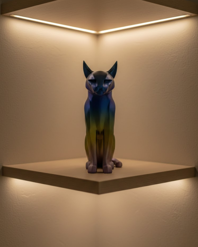 Koyu Rainbow Kedi biblo, dekorasyonda farklılık arayanlar için özel bir tasarıma sahiptir. Renk geçişleri ışığa göre değişen görsel bir etki sunar ve bulunduğu ortama hareket katar. 18×25 cm boyutlarıyla ne çok büyük ne de küçük olup ev içinde rahatça konumlandırılabilir. Salon, ofis veya çalışma alanlarında şık ve modern bir atmosfer oluşturmak isteyenler için ideal bir dekoratif objedir.