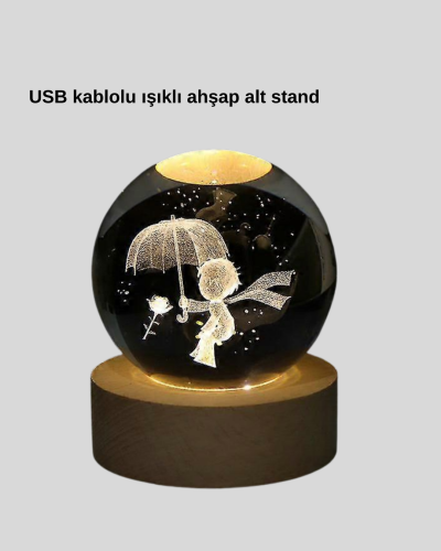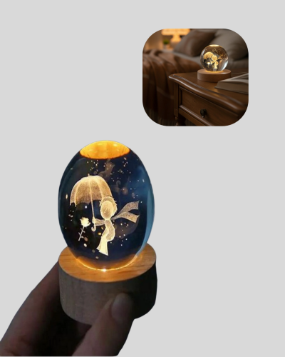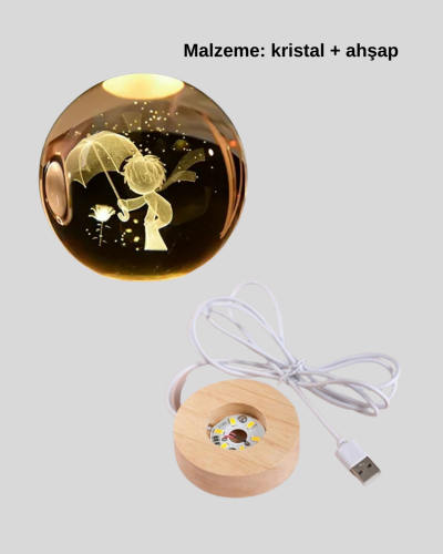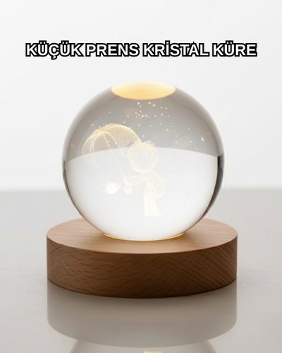 Küçük Prens’in büyülü dünyasını ışıkla birleştiren bu kristal top gece lambası, bulunduğu her ortama duygu, anlam ve estetik katar. Sıcak ışığıyla romantik bir ambiyans yaratırken kristal içerisindeki figür, odanın enerjisini değiştirir. Hem yetişkin odalarında hem çocuk odalarında dekoratif bir anlam taşır.