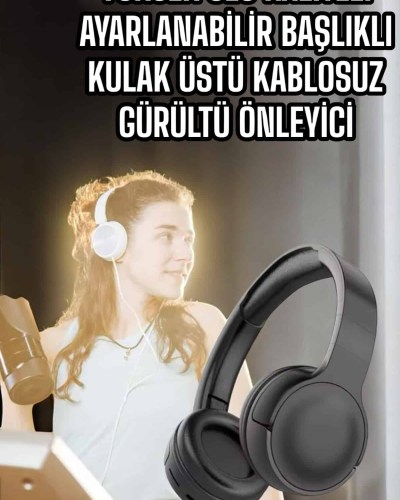 Kulak Üstü Kablosuz Bluetooth Kulaklık Gürültü Önleyici Ayarlanabilir