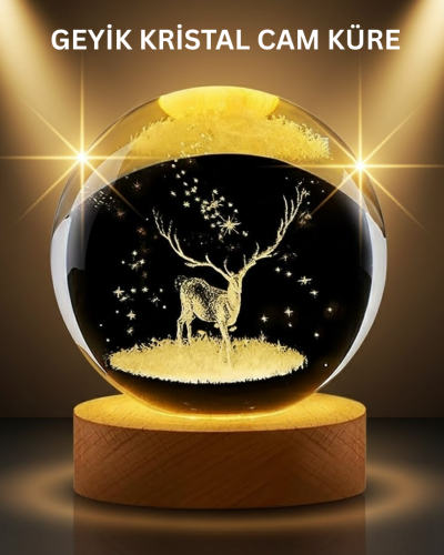 3D Geyik Desenli Kristal Küre ...
