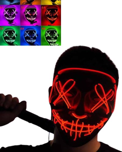 Led Işıklı Neon Maske Cadılar Bayramı Maskesi Korkunç Korku Maskesi