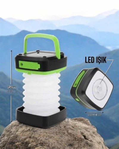 Katlanabilir Kamp Lambası Solar Fener Görünümlü 3 Kademeli Şarjlı