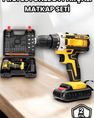 Projelerinizi tamamlamak artık çok daha kolay! Çift Bataryalı Darbeli Şarjlı Matkap Seti, farklı yüzeylerde delme ve vidalama işlerinizi hızlı ve pratik bir şekilde yapmanıza olanak tanır.• Kapsamlı 24 Parça Aksesuar Seti:• Metal ve ahşap delme uçları, lokma bağlantı aparatı ve vidalama uçlarıyla tüm ihtiyaçlarınıza çözüm sunar.• Dayanıklı Metal Dişli Sistemi: Daha uzun ömürlü kullanım ve üstün güç aktarımı sağlar.• Çift Batarya: Projelerinizi kesintisiz bir şekilde tamamlayabilirsiniz.• LED Işık Desteği: Çalışma alanınızı aydınlatır ve hassasiyet sağlar.• Darbeli Mod: Zorlu malzemelerde bile kolay delme imkanı.Hem günlük işlerinizde hem de büyük projelerinizde güvenle tercih edebileceğiniz bu set, dayanıklılığı ve çok yönlülüğü ile vazgeçilmeziniz olacak!