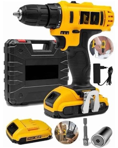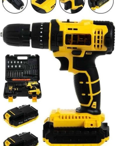 24 Parça Çift Bataryalı Akülü Darbeli Matkap – Güçlü Motor, Metal Dişli, LED Işıklı