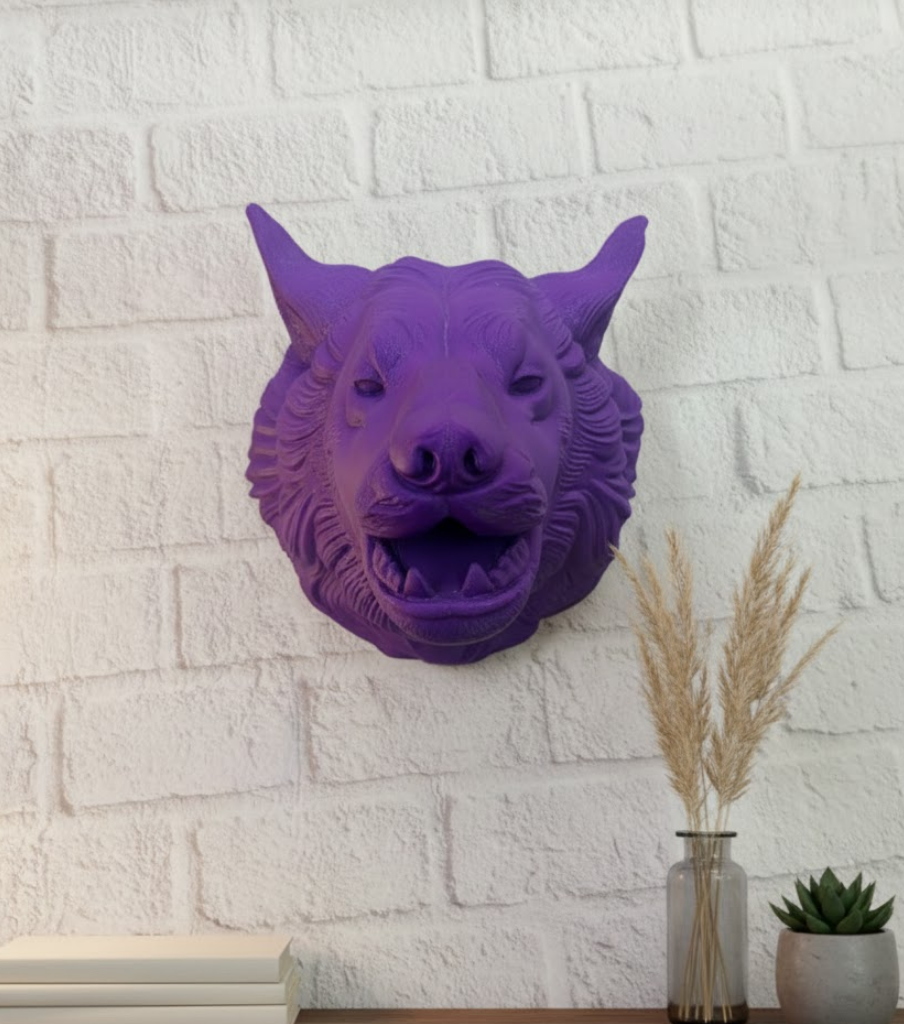 Mor kurt duvar heykeli, modern dekorasyona fantastik bir dokunuş ekleyen sıra dışı bir üründür. 25×19 cm ölçüleri ile ideal dekor boyutlarına sahiptir ve her duvara kolaylıkla uyum sağlar. Özellikle mor rengin göz alıcı etkisi, ürünü sıradan dekorlardan ayırarak mekâna canlılık ve sıra dışılık katar.