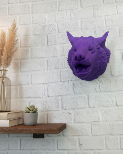 Mor Renk 3D Kurt Başı Duvar Dekoru Asılabilir Maskot Heykel 25×19 cm