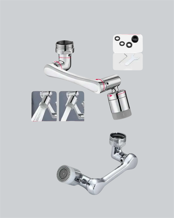Günlük kullanım için geliştirilmiş olan bu 1080° dönebilen musluk başlığı, evinizdeki lavabo ve muslukları çok daha işlevsel hale getiriyor. Üç eklemli robotik kol sistemi sayesinde toplamda 1080° dönme kapasitesine sahiptir. Bu özel yapı, musluğunuzun sabit yönlü su akışını sınırlamaktan çıkarır, dilediğiniz yöne kolayca yönlendirebilmenizi sağlar. Yukarı, aşağı, sağa veya sola… Suyun nereye akacağını artık siz belirlersiniz.