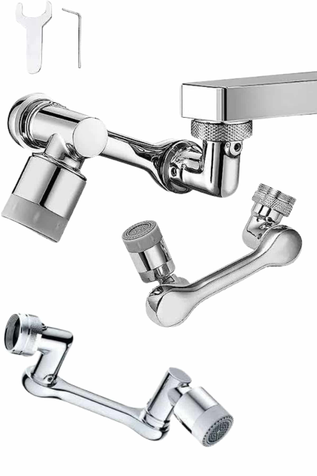 Kurulumu son derece basittir. Tek yapmanız gereken, mevcut musluğunuzun başlığını söküp yerine bu 1080 derece dönebilen aparatı monte etmektir. Kutudan çıkan monte aparatları sayesinde tüm standart musluk tipleriyle uyum sağlar. Üstelik lavabo, mutfak ve banyo gibi farklı alanlarda çok yönlü kullanım sunar. Sebze, meyve, tabak, el ve yüz yıkama gibi işlemler için idealdir. Kovalara su doldurmak, saç yıkamak ya da temizlik yapmak artık çok daha kolay ve pratik.