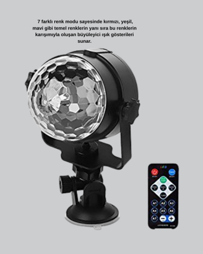 Müzik Ritmine Duyarlı Renkli Disko Topu – 7 Modlu Işıklı Parti Lambası