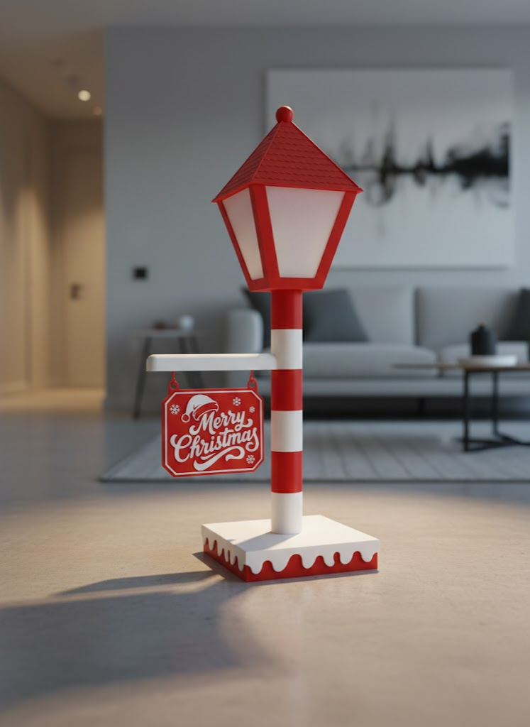 Klasik Noel tasarımından ilham alan Yılbaşı Tabelalı Dekoratif Lamba, kırmızı şapkalı direk formu ve asılı “Merry Christmas” tabelasıyla yılbaşı süslemelerine nostaljik bir dokunuş katar. 60 cm yüksekliği sayesinde bulunduğu ortamda hemen fark edilir ve dekorasyonun odak noktası haline gelir.