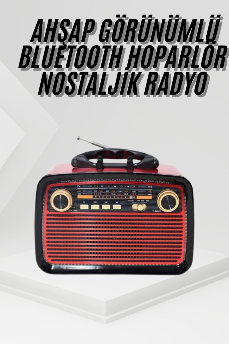 Nostalji Radyo Bluetooth Hoparlör USB-SD Kart Giriş Led Fener Işıklı Bataryalı Pilli