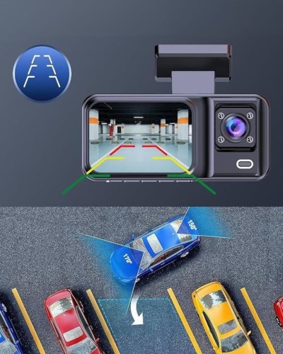 Ön kamera 1080P Full HD çözünürlükte yüksek kaliteli görüntüler sunarken, iç ve arka kameralar 720P çözünürlükle netlikten ödün vermeden destek sağlar. 2 inç IPS ekranı, kayıtları canlı olarak takip etmenizi sağlarken, 170 derece geniş açı desteğiyle geniş bir görüş alanı sunar. Geri vitese geçildiğinde park çizgileri otomatik olarak ekrana yansır ve arka kamera devreye girer; bu özellik park sırasında büyük kolaylık sağlar. Ayrıca arka kamera ürünle birlikte hediye olarak sunulmaktadır.