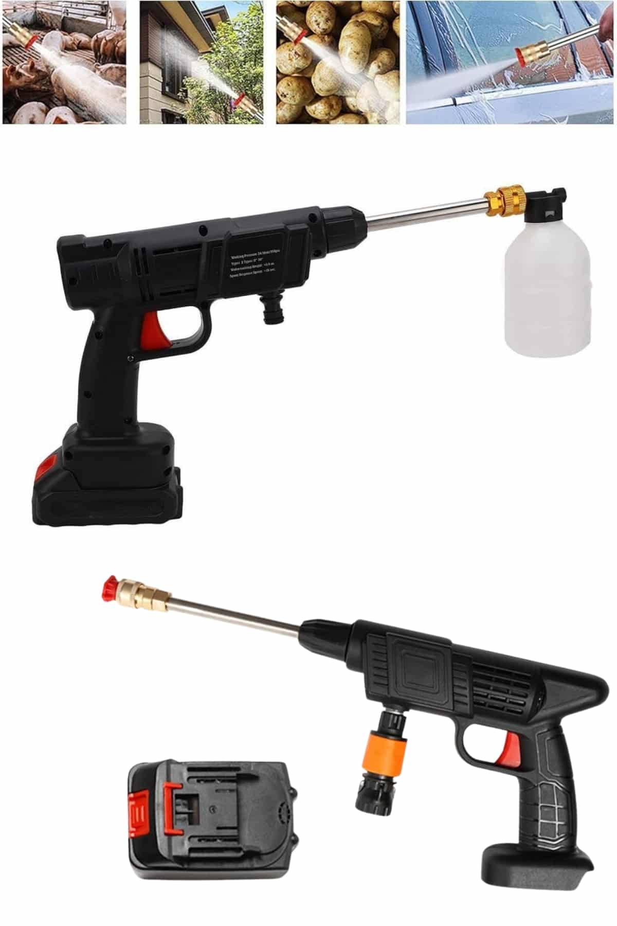 Bu akülü yıkama makinesi, sadece araç temizliğinde değil, aynı zamanda bahçe sulama, bisiklet ve motosiklet temizliği gibi çeşitli alanlarda da kullanılabilir. Ev ve bahçe temizliğinde de oldukça pratik ve verimli bir çözümdür.