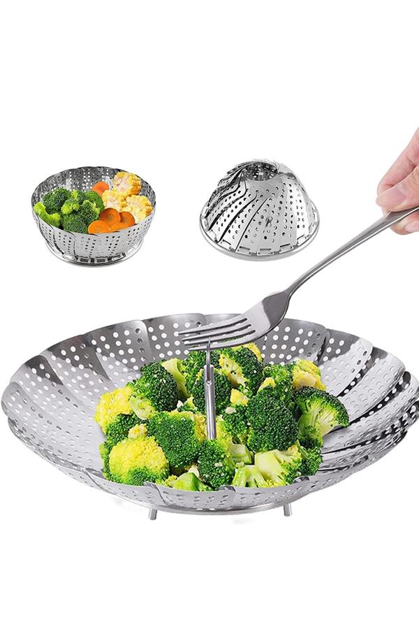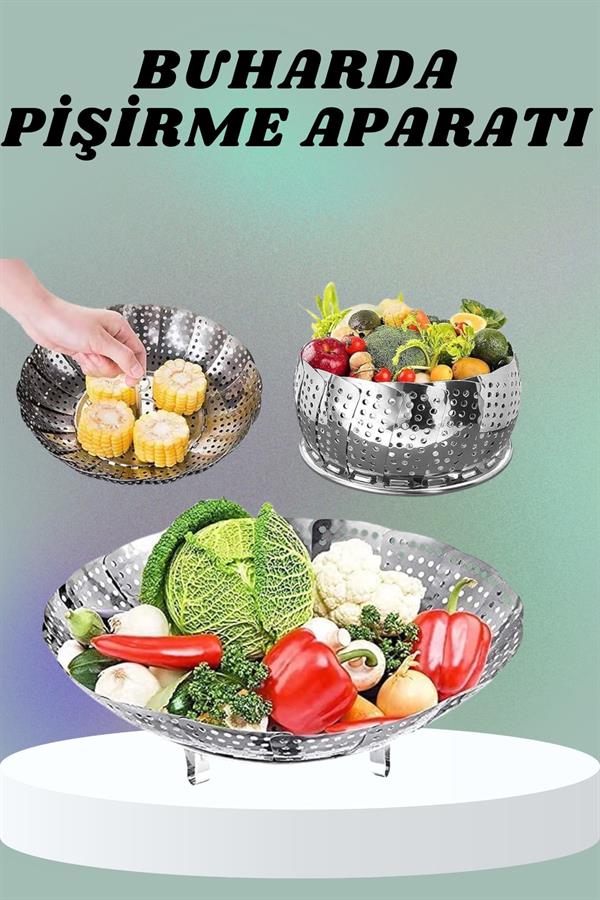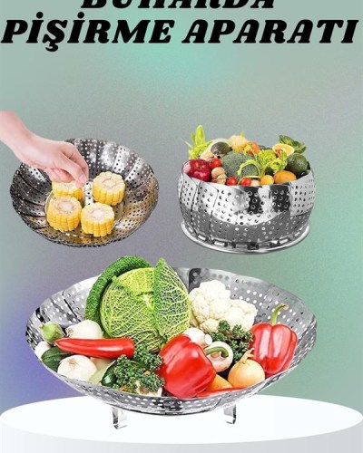 Katlanır Buharda Sebze Pişirici Haşlayıcı Haşlama Sepeti Aparatı
