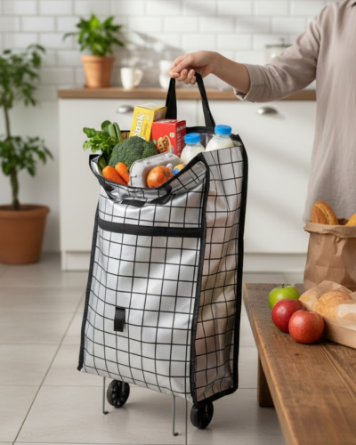 Şehir hayatında alışverişi kolaylaştıran bu tekerlekli pazar çantası, fonksiyonel tasarımıyla öne çıkar. Geniş hacmi, dayanıklı kumaşı ve sağlam tekerlek yapısı sayesinde günlük kullanımda güven verir. Alışveriş sırasında ürünleri düzenli şekilde taşımanıza yardımcı olur.