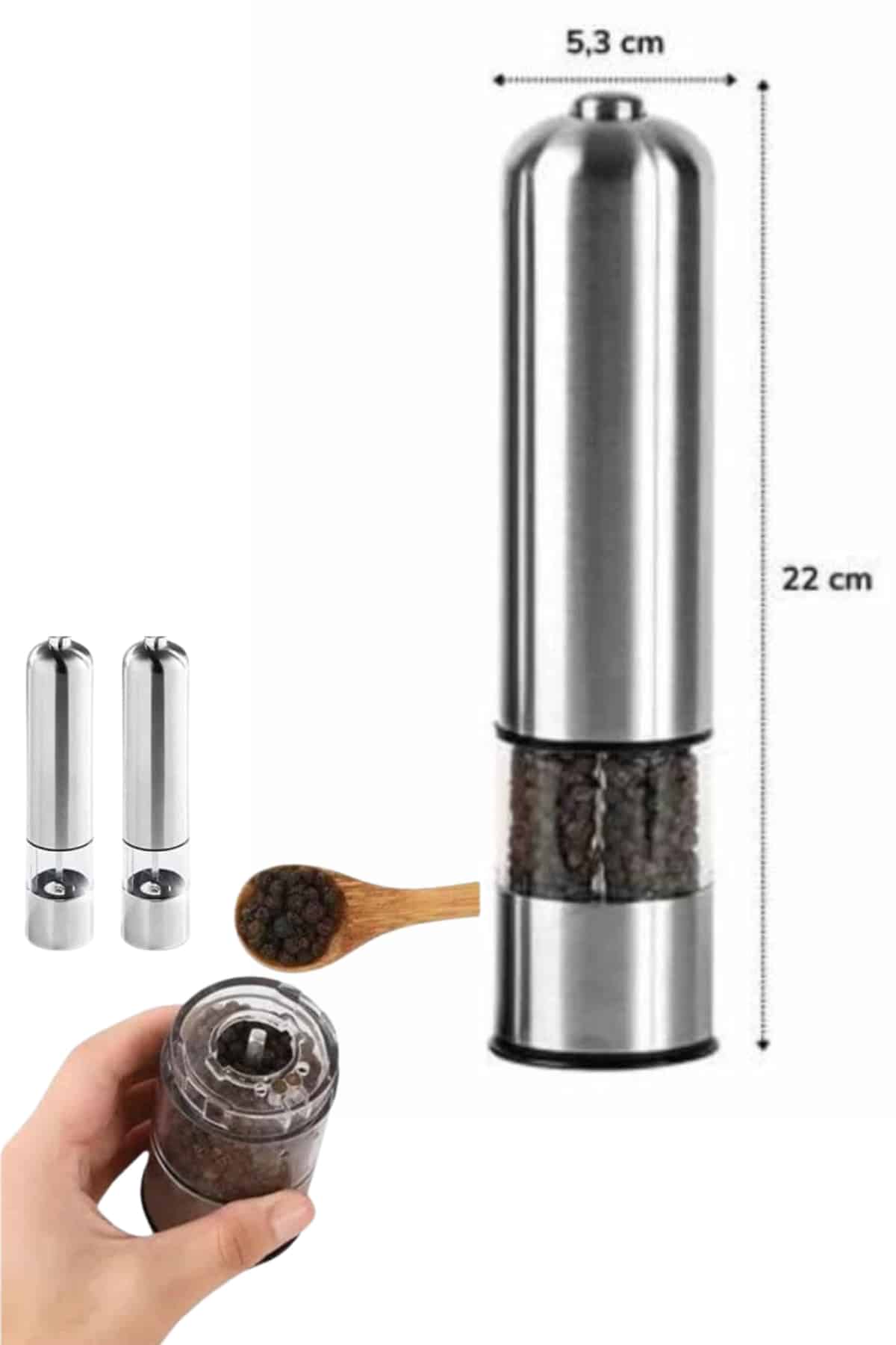 Mutfakta hem fonksiyonelliği hem de zarif tasarımıyla dikkat çeken bu otomatik baharat değirmeni, yemek hazırlama sürecinizi kolaylaştırmak için tasarlanmıştır. Sağlam paslanmaz çelik gövdesi, dayanıklılığı ve şıklığı bir araya getirirken, içerisindeki yüksek hassasiyetli seramik öğütücü ise uzun ömürlü performans sunar. Biber, tuz, mısır, hardal tohumu ve benzeri tüm kuru baharatları öğütmek için ideal olan bu cihaz, mutfağınızda taze lezzetler yaratmanıza yardımcı olur.
