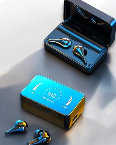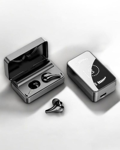 - Ayna boyalı akıllı dijital ekran, tasarımla dolu, kulaklık ve şarj kutusunun elektriğini açıkça gösterir.